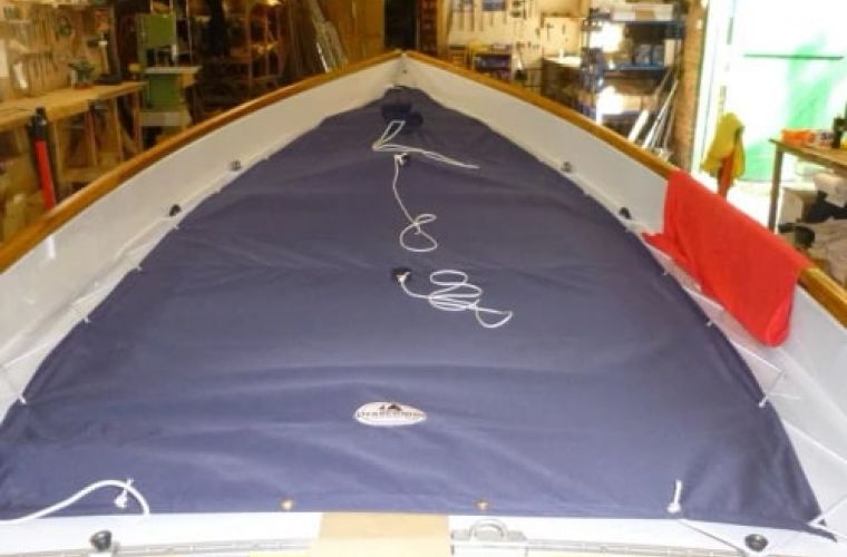 The Overall Cover is sometimes referred to as the winter cover. It fits over the gunwhale cappings & down the sides of the boat by a few inches. By doing this it protects all the woodwork.